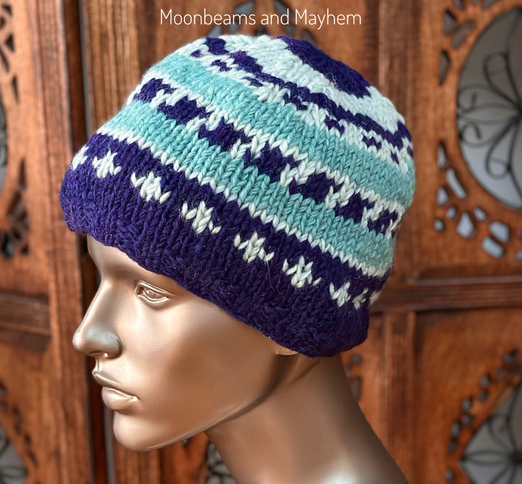 As each piece is handmade, the knitted pattern may vary ever so slightly — every hat has its own unique charm while remaining incredibly similar in style.