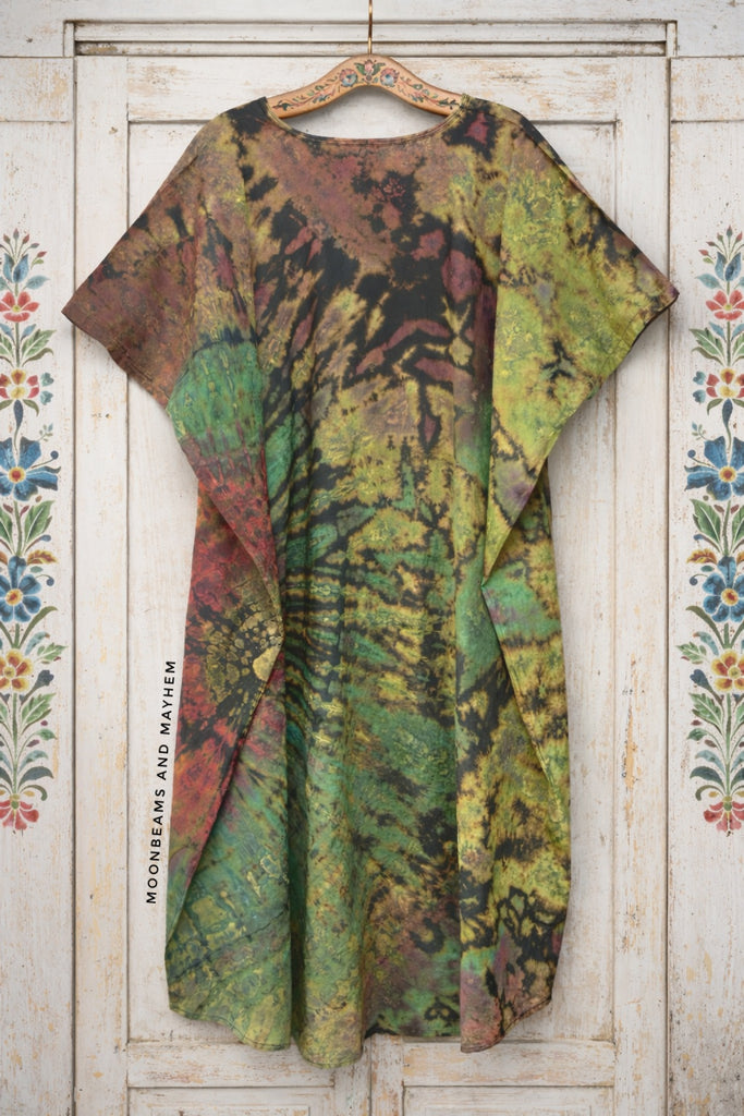 Rooted in earthy tones and wild woodland spirit, The Forager Tunic Dress feels like something discovered on a wandering path through forest and field. The beautiful blend of mossy greens, golden ochre and deep woodland shades creates a natural, grounded palette that feels both magical and timeless.