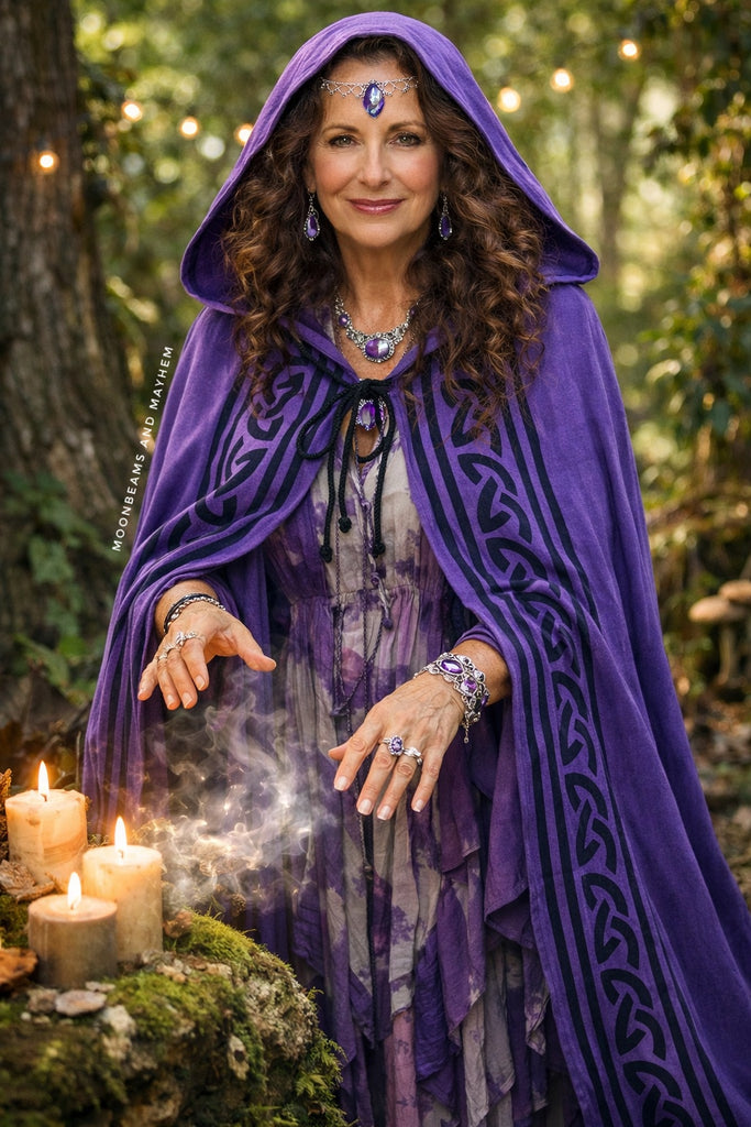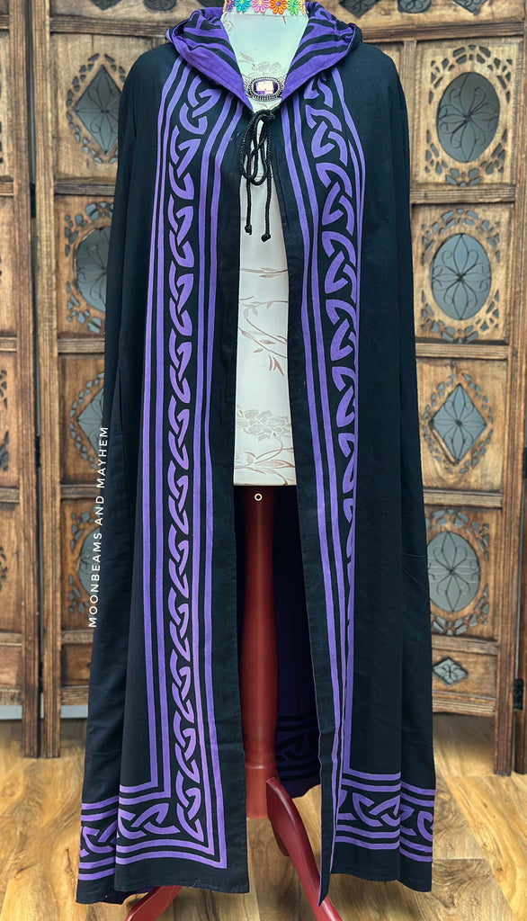 Step into your power and wrap yourself in magic with this reversible cotton Shadow & Amethyst Cape / Cloak, a piece made for moonlit wanderers, ritual keepers, and lovers of the mystical arts.